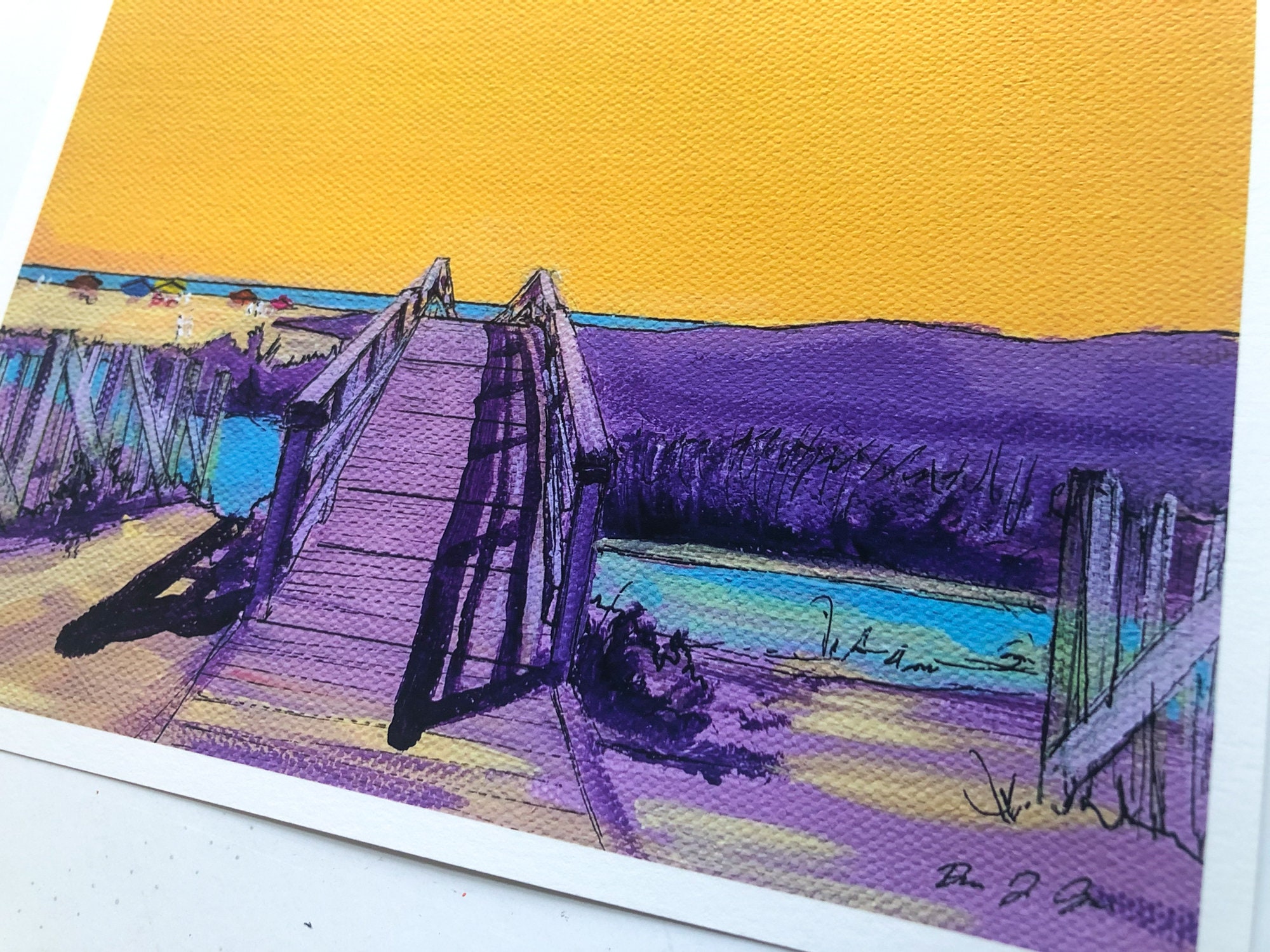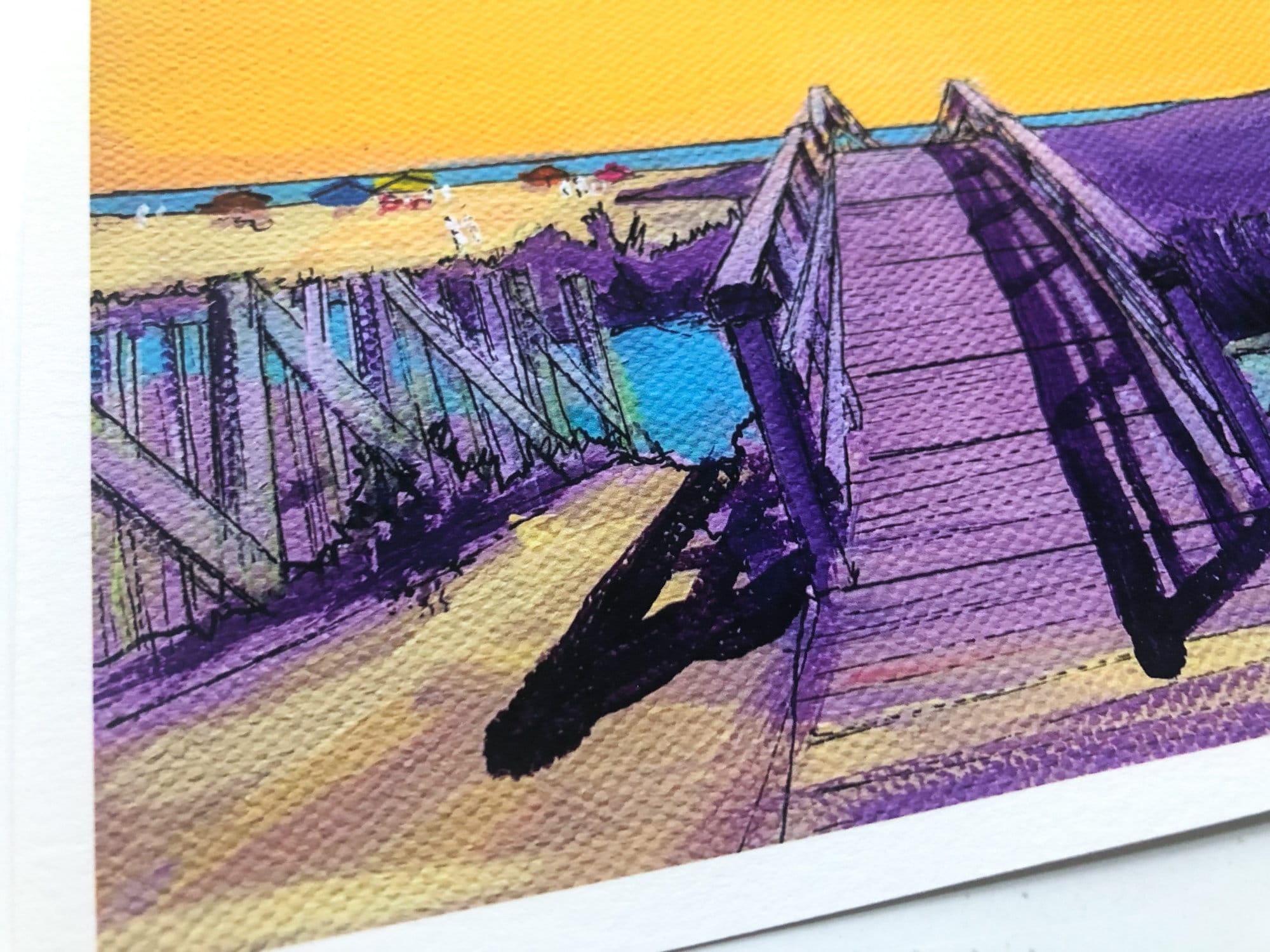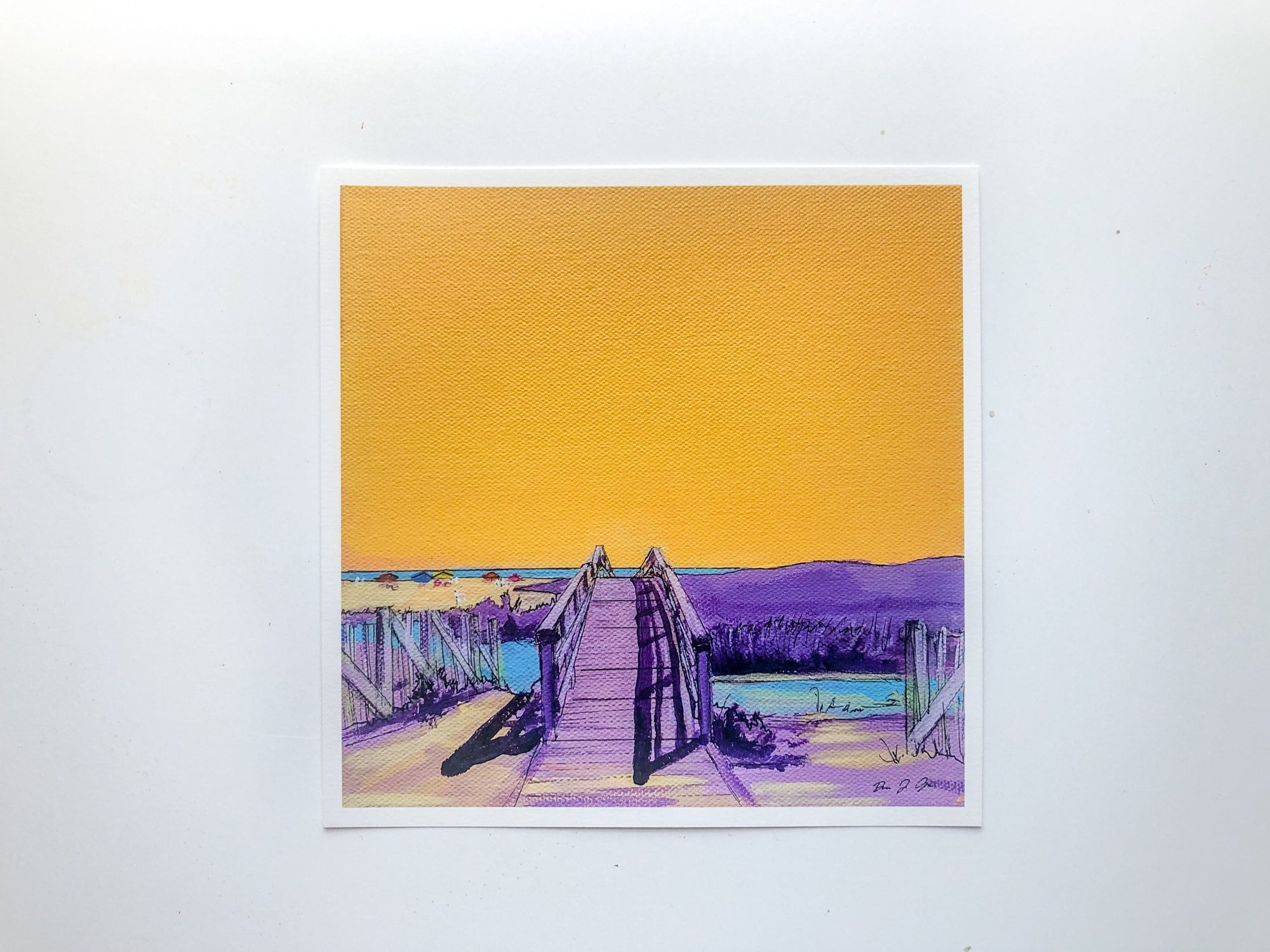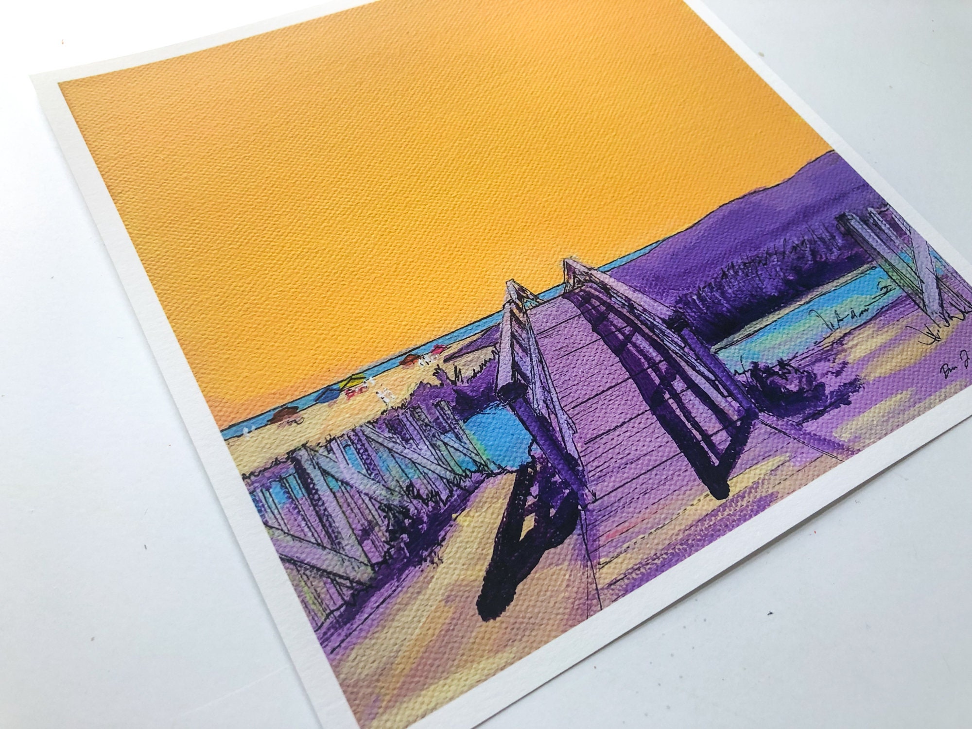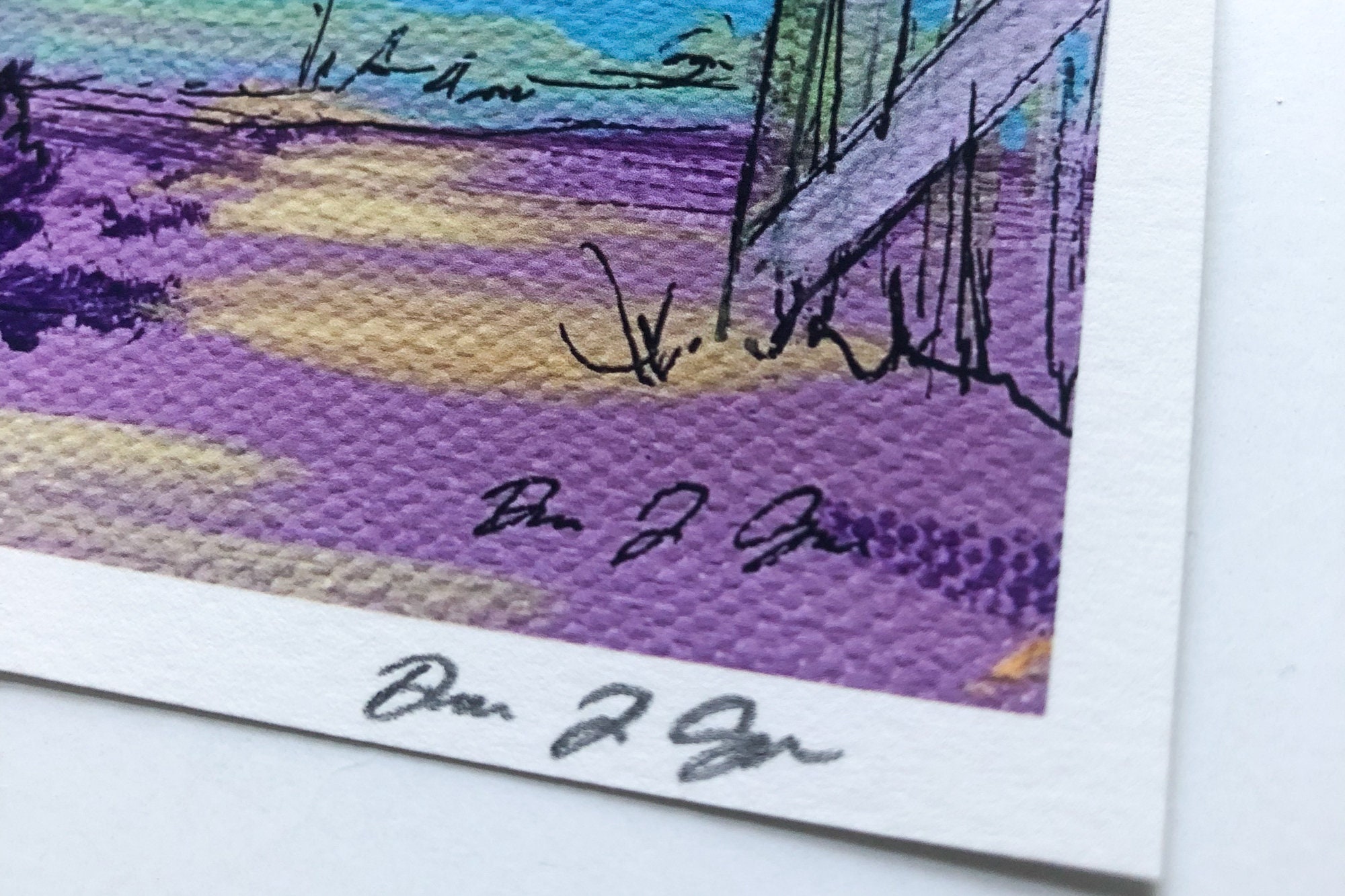 Love how vibrant the colors are in these prints. Texture of the canvas shows through in the print, too. Paper is thick, high quality and signed. Came packaged in plastic sleeves with stiff cardboard to ensure the envelope couldn’t bend in transit. Highly, highly recommend. As soon as I got my first print, I loved it so much I ordered two more.